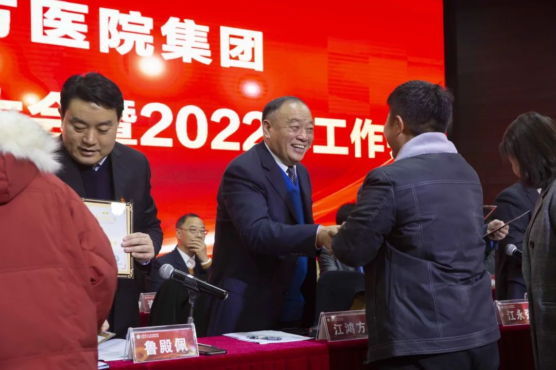 谈到集团2021年取得的成就,江永强董事长颇为感触地说,去年一年,集团压力很大,很累,但也是收获颇丰的一年。这一年,集团医教研全面突破,收获很多荣誉,实现很多“第一次”。职级改革让年轻干部有目标、有灯塔,工作干劲更大,更加尽职尽责。他要求去年所有新晋副高的28名医师要快马加鞭,乘胜追击,尽快着手正高晋升事宜,全力以赴,用3至5年时间实现集团正高职称由个位数向十位数的巨大跨越。2022年,集团信息化建设将实现OA办公软件、财务软件、互联网医院等系列软件的全集团共享,并在此基础上再上新台阶,实现云端数据互联互通,为集团三甲创建,打造现代化医院提供更加安全、高效的信息通道和保障。