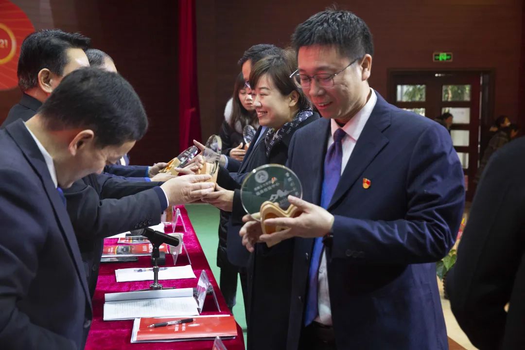 宣读结束,大会举行了隆重的颁奖仪式。党委书记江鸿方、董事长江永强等集团领导分别为医院高质量发展奖、医疗中心高质量发展奖、管理创新奖、开拓创新奖、科室高质量发展奖、规范医疗奖、卓越奉献奖、抗疫先进集体、东方名医、东方工匠、科研创新标兵、技术突破标兵、管理创新标兵、教学园丁奖、抗疫先进标兵、青年励志奖、美丽天使奖、保障先进标兵获得者颁发了荣誉奖杯。