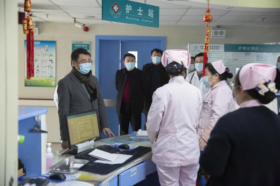 江永强董事长带队深入各值班科室,与在岗人员亲切交流,详细询问了解各临床科室春节期间住院病人收治情况,感谢大家在阖家团圆的日子里,舍小家为大家,坚守在岗,同时叮嘱值班人员提高警惕,过节不忘防疫,在春节期间要坚决落实国家、省、市关于疫情防控的工作要求,精准细致做好疫情防控和春节期间各项工作,确保患者及群众平安祥和度过春节。