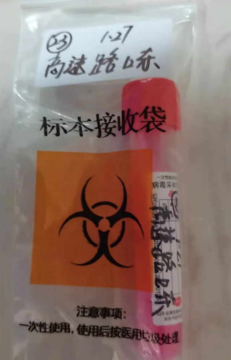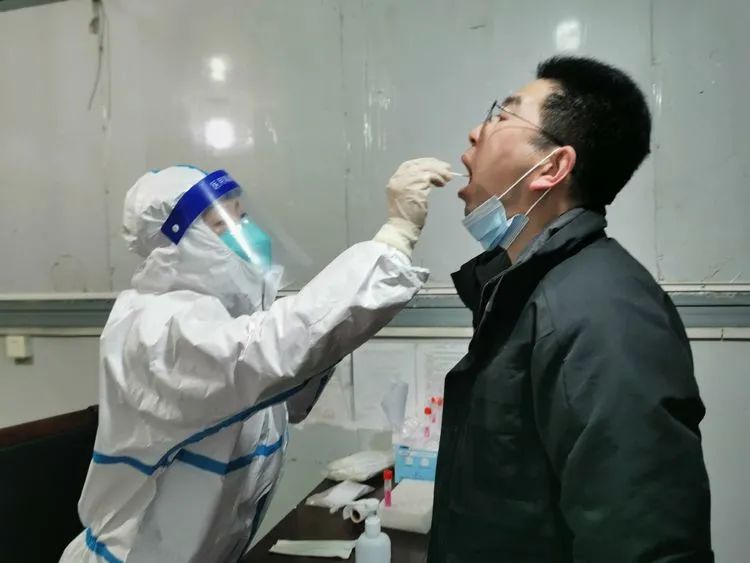 检测分为3班制,早班、中班和夜班,以一人登记,一人采集的模式搭配。由于安排合理,经验丰富,新庄孜医院的医务人员一进入检测点,便规范而又熟练穿上防护服、口罩、手套、防护面罩等,语言柔和积极引导:“师傅,张嘴,张大点,啊……好了。”之后将采集好标本的棉签放入试管。三九严冬,天寒地冻,防护服内无法增添棉衣,前来检测人员川流不息,检测点内寒风不停灌入,志愿者们饱受寒风,却无一抱怨,一直在高速路口坚守着。年三十还坚守岗位的院感科科长王积桂表示:“我们站在这里,必须要按质按量完成任务,这是一名共产党员应尽的义务!更是一名医务工作者的职责!”