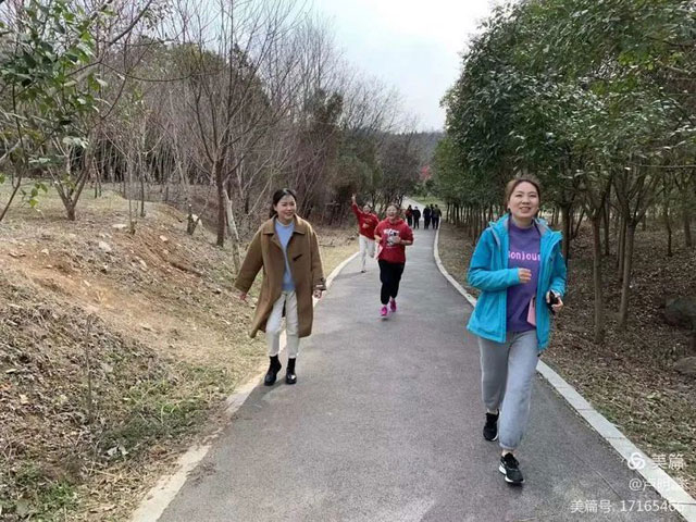 本次徒步活动从医院南大门出发,往东行走,经过防空洞向南,到仙女湖,一直环形至终点(医院南大门)。随着一声令下,徒步活动拉开帷幕。