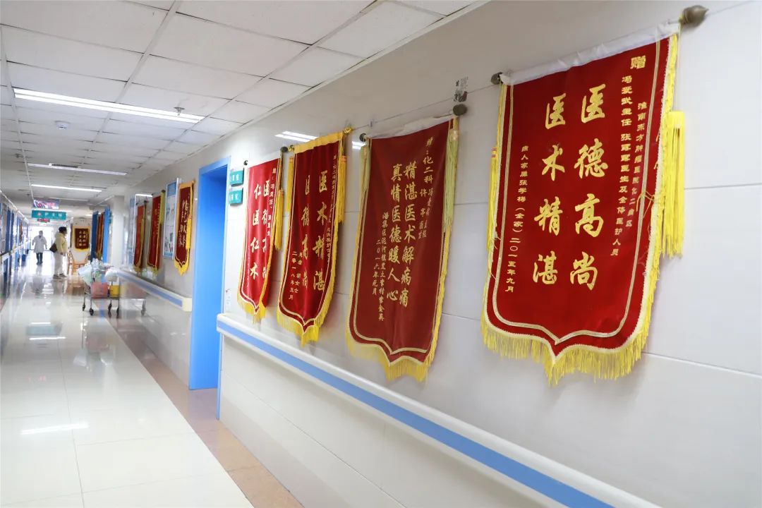 无独有偶。家住城市西部八公山区的患者李女士接受左乳肿瘤术后,病理诊断为浸润性小叶癌伴浸润性导管癌,含部分粘液腺癌成分,病理成分较为复杂,已达中晚期。入院后,鲍学浩放弃休息时间认真研究,制定了CA-T化疗方案并辅助乳腺癌术后放疗、内分泌治疗,很快见效。截止目前,李女士恢复良好,定期来院随访,并且已经积极回归社会,正常工作生活,在鲍学浩主任的鼓励下,她愈发乐观向上。绣着“德艺双馨•妙手回春”的锦旗,是她对鲍主任谢意的诚挚表达。
