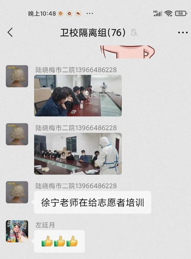 陈静护士长为小组成员及志愿者进行院感培训。一遍遍指导手卫生,一次次教穿脱防护用品,要求大家务必全员重视,做好自身防护,打好疫情防控阻击战!在这场没有硝烟的战场上,无人退缩,无人逃避,白衣战士并肩作战,“明知前路风险在,义无反顾冲向前!”