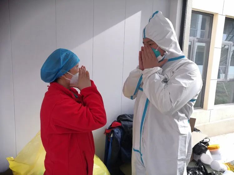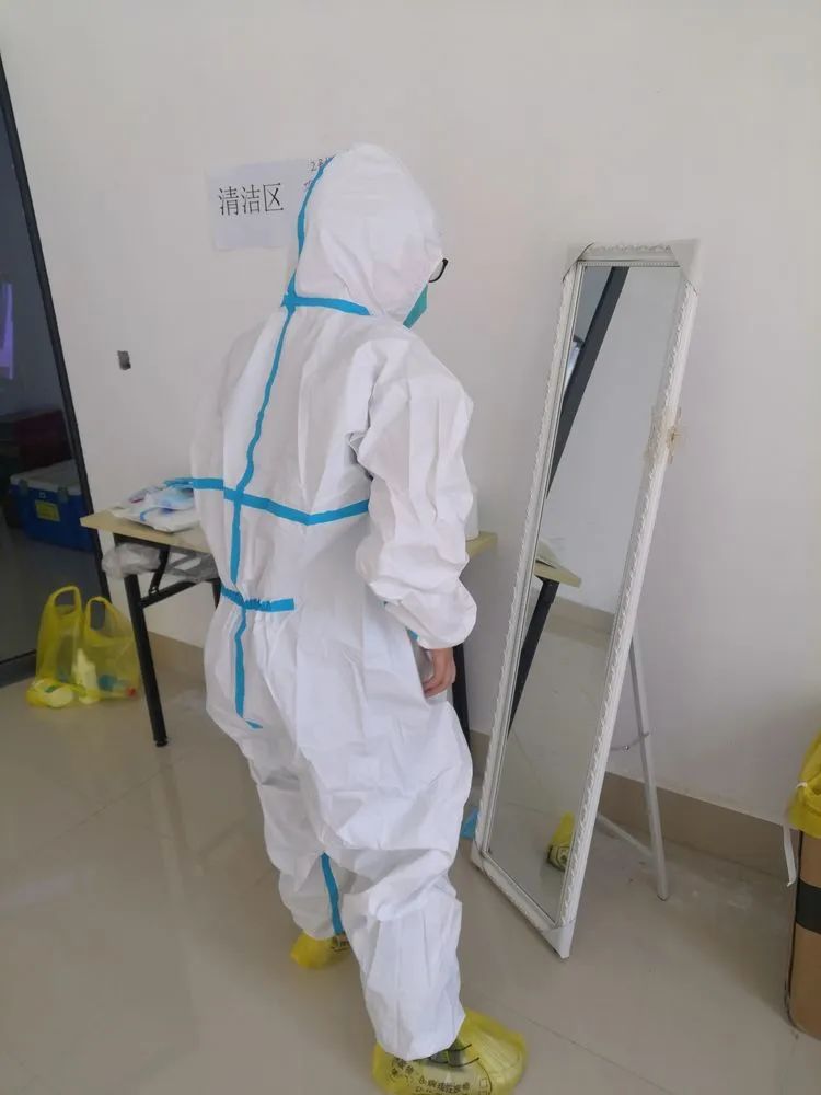 进入隔离区,帽子、口罩、手套、防护服、防护面屏是大家的装备,穿上了沉重的“战袍”,整整六七个小时不吃不喝不休息,大家全身心的投入到工作中去。饿么?饿!累么?累!但是隔离点群众发自内心的每句“谢谢你,辛苦了”,让一切疲劳都烟消云散,觉得一切都是最温暖,最美好的!