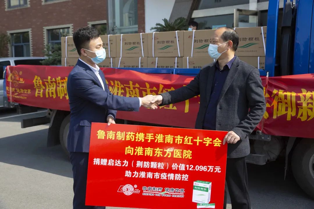 4月7日下午,鲁南制药集团携手淮南市红十字会向淮南东方医院集团捐赠启达力(荆防颗粒)30箱(共2150盒)。