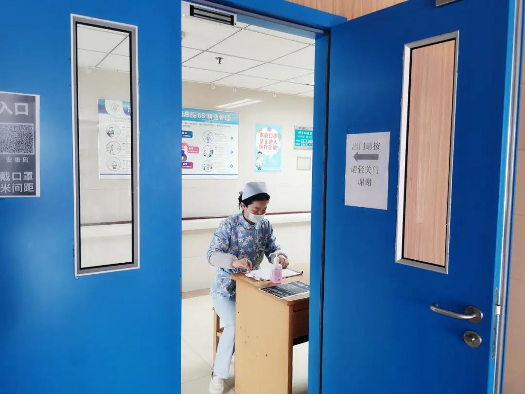 ▲岳洁护士在病区入口核查登记