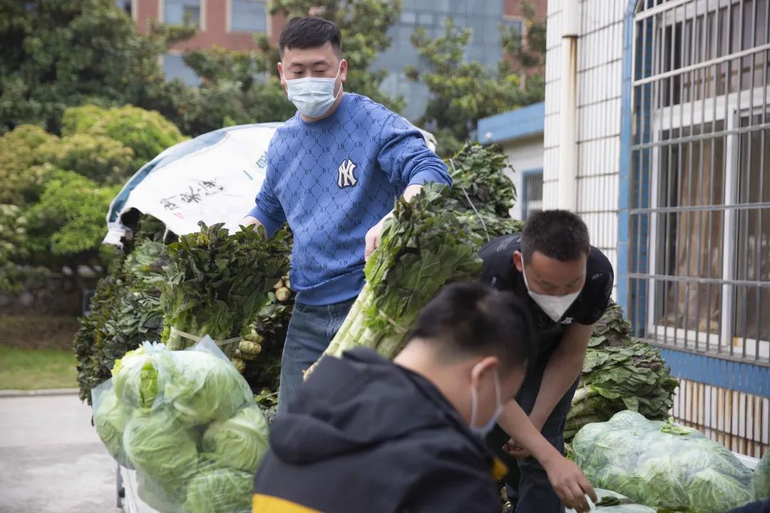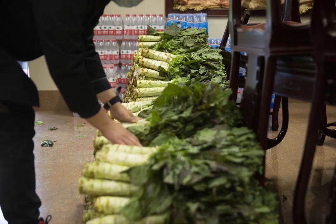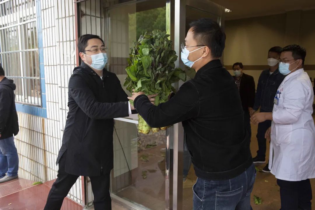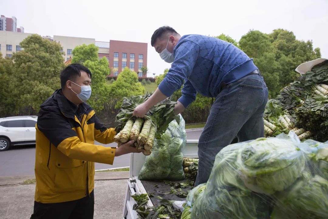4月14-15日,一辆又一辆载满蔬菜的货车缓缓驶进东方总院,来自毛集镇董峰湖农产品基地的菜农与总院机关的工作人员将一捆捆的莴笋从车上卸下,等待着发放给一线抗疫的医务人员们。