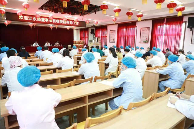 抗疫关键时刻,为鼓舞全员士气,戮力同心打赢疫情歼灭战,全面从严从紧、规范地抓好各项医疗工作,4月22日上午,集团江永强董事长百忙中莅临肿瘤医院,就相关工作做重要部署。