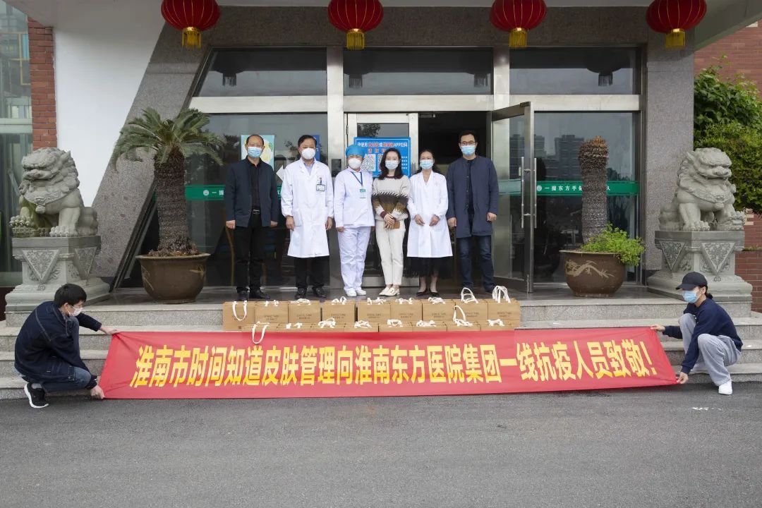 4月29日上午,安徽君尹生物科技有限公司的总经理蒋承君,代表淮南实体店“时间知道皮肤动态管理中心”向东方医院集团的女性医护人员捐赠护手霜1000支。