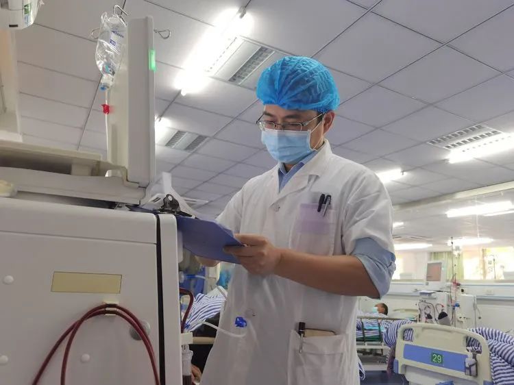 血透患者是一群特殊的群体,他们的治疗一天也不能间断,广济医院为了守护血透110位患者的生命和防疫安全,科主任魏然、副主任刘小波和护长马英以高度的责任心和不折不扣的战斗力,带领医生护士顶住压力、加班加点,为透析患者的安全保驾护航。特别是当疫情防控需要血透医护人员支援时,科主任魏然、护士范琳琳等主动请缨、奉命出征。临时调走三台血液透析机,加上外部支援,让本就人手紧张、满负荷运转的血液透析科工作强度陡增。服从命令听指挥,副主任刘小波、护士长马英及桑永楠医生等全体血透人员,昼夜坚守,增开夜班、调整班次,开解患者、安抚家属,做到了患者安全安心、组织信任放心。