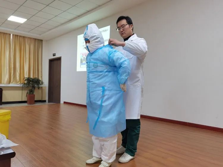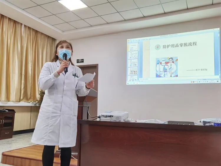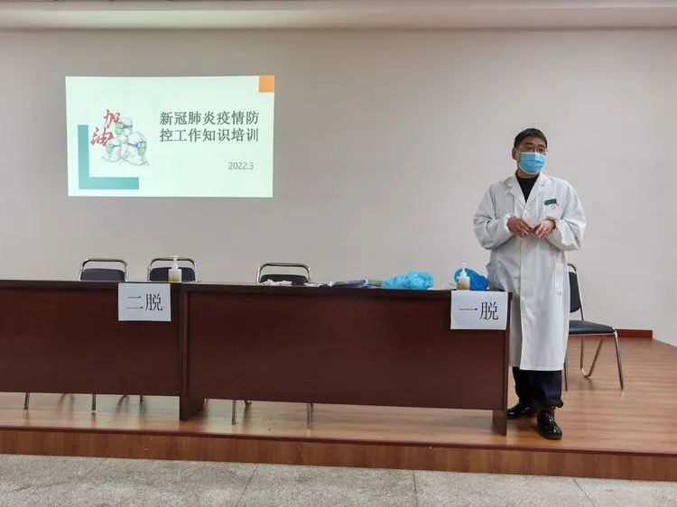 随后,各科室以院领导的备战思维为行动指南,化思想为行动,医务科、院感科等积极组织全院职工参加“人民好医生”手机客户端新冠肺炎系列课程学习,特别是《新型冠状病毒肺炎诊疗方案(试行第九版)》和《抗原检测应用方案》;连续组织《穿脱防护服》等相关疫情防控实战培训,反复进行全员考核,确保人人过关。重点科室如急诊、预检分诊、血透室等加密医患核酸检测频次;药械科、检验科、后勤等科室提前调配、储备物资;院内防控措施不断加强。