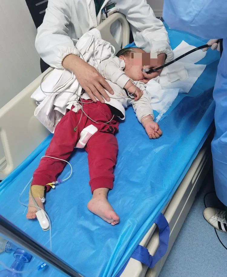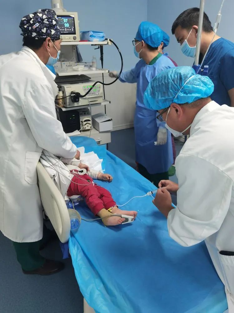 时间一点点流逝,就在家人一筹莫展之际,意外联系到位于谢家集区的淮南东方集团广济医院可以接诊。连忙驱车前往,抵达广济医院已是中午13时左右。早已经得到求助消息的消化内科和麻醉科团队均已就位。急诊完善术前检查后,小娃被立即送进内镜中心。