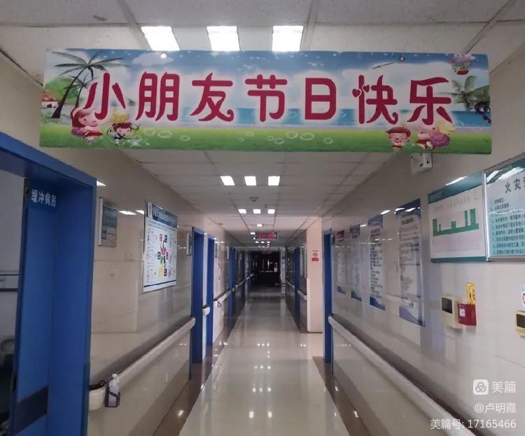 儿科的医护人员利用空闲时间装扮病区。在儿科全体医务人员的精心筹备下,五彩缤纷的气球,绚丽多彩的卡通画,将病区烘托得温馨可爱,处处洋溢着欢乐的气息,消除了孩子的恐惧心理。