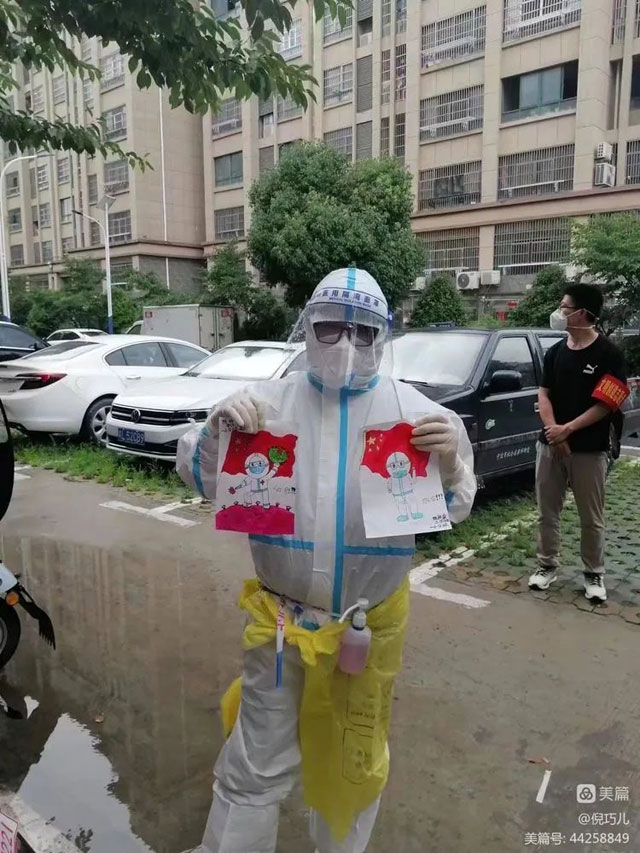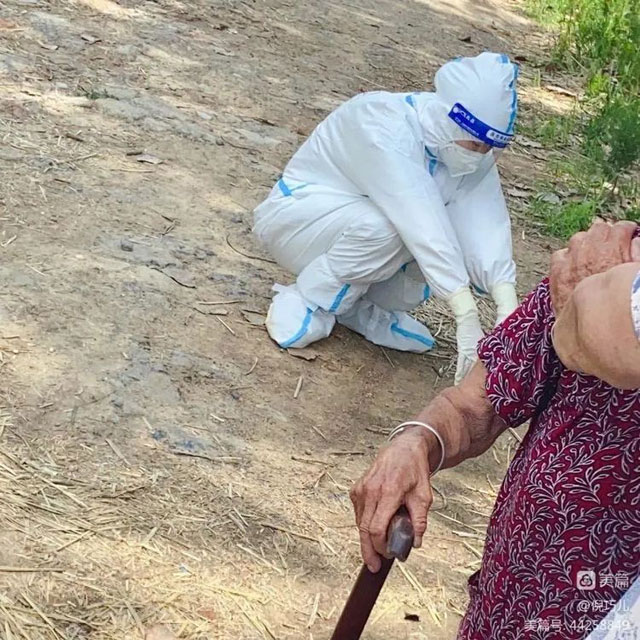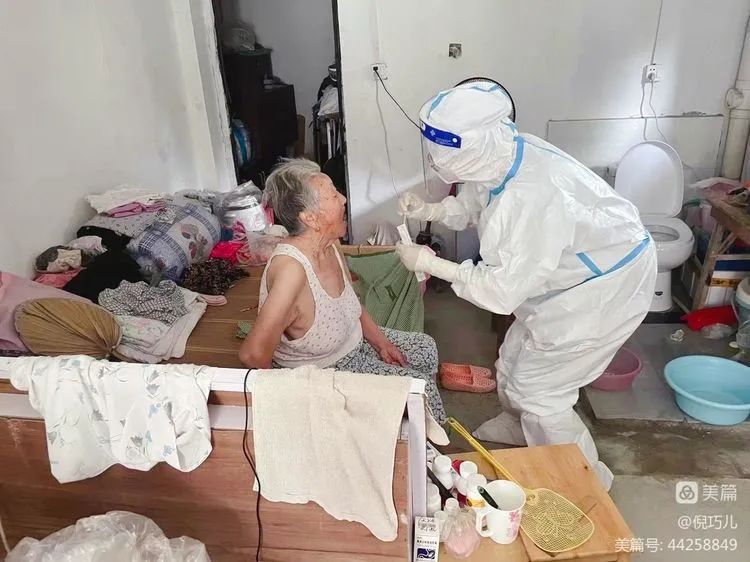 这天下午,在社区楼长的指引下,我踏进了一位91岁独居老人的家门。楼长向她解释我们是从淮南赶来支援采样的医护人员后,她颤颤巍巍的想要站起身来致谢,又因活动能力不佳,倚坐在床旁。我们了解到,因疫情突起,她的家人无法及时回来陪伴照顾她。为她采样完毕后,我们很想留下多陪她说会儿话,但还有很多同她一样行动不便的老年人在家等待我们进行采样,时间紧、任务重,我在门口朝她挥手告别,她不停的感谢道:“你们辛苦了,淮南人,好样儿的!”