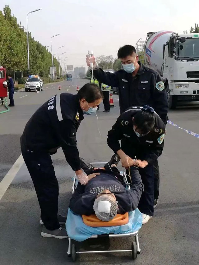 20点04分,抢救结束后,张厚荣刚刚回到医生办公室,120的出诊调度电话再次响起。患者因患尿毒症长年在家透析,半小时前突发呼吸困难、紫绀。医护人员到达后初步检测为尿毒症伴多脏器衰竭,立即给予吸氧,建立静脉通道,连接监护仪监测生命体征,途中,患者突然病情加重,神志不清,呼吸变弱,张厚荣和王丽持续对患者进行静脉推注药物抢救治疗措施,安全护送患者到达上级医院继续救治。