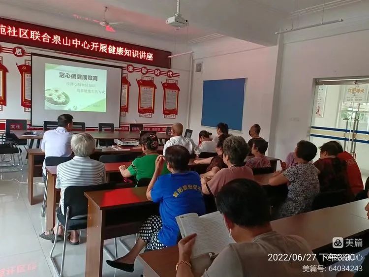 2022年6月27日,淮化医院泉山社区卫生服务中心在泉山西苑社区开展了老年人健康知识讲座。