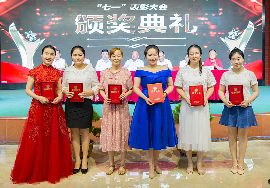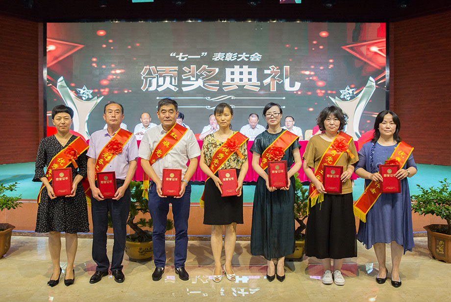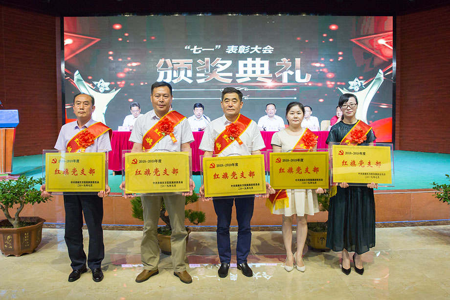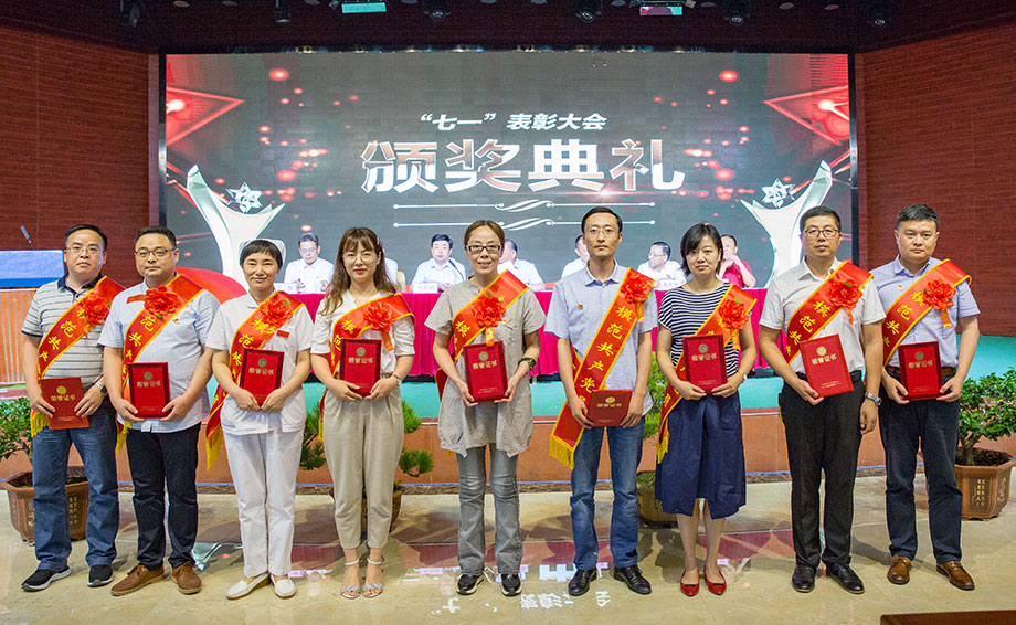集团领导为五个红旗党支部、九个五好党支部、七位优秀党务工作者、演讲比赛优秀选手颁发了奖项。其中总院内二党支部、肿瘤医院外科党支部、新庄孜医院机关后勤党支部、李郢孜中心医院党支部、谢桥医院临床党支部荣获“红旗党支部”称号;总院外一党支部、肿瘤医院内科党支部、潘三医院党支部、李二医院党支部、田东医院党支部、凤凰医院内科党支部、机关后勤党支部、合福医院党支部、济民医院党支部荣获“五好党支部”称号;廖红光、王翀、段松颖、戴梅珍、孙洪明、武永安、张冬梅荣获“优秀党务工作者”称号;苏晓莉、邵蔚、顾冕、冯湘红、田平、余萌、袁家跃、胡玉东、缪继斌、张红荣获“模范共产党员”称号。