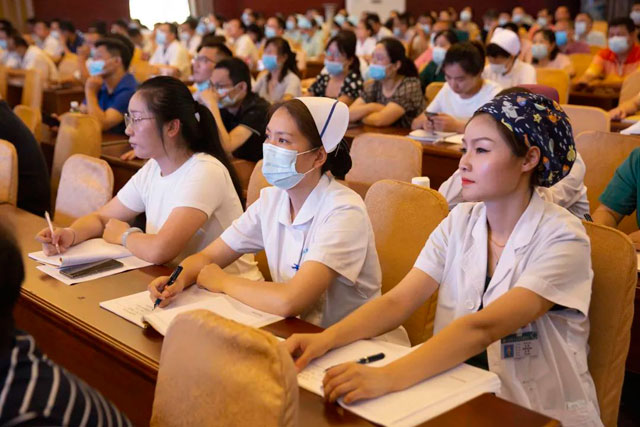 谈到疫情防控工作,董事长指出,随着泗县和全国多地疫情的不断出现,防控形势和压力依然十分严峻。许多危险往往就藏匿在放松和麻痹大意中,作为医疗单位我们一定要高度重视,严格执行各项防控措施。所有人出省必须履行企业微信请假、报批手续,出市也要关注好疫情图,不要盲目出行。同时要进一步强化周末门禁管理,做到规范执行,常抓不懈。董事长指出,这次泗县疫情,集团凌晨12点接到市卫健委通知,需要紧急抽调62人前往支援。各部门和医护人员积极响应,闻令而动,迅速集结,连夜出战。在每天往返奔波、高温湿热等艰苦条件下,支援的同志们没有一个叫苦,没有一个临阵退缩,高质量、圆满地完成了支援任务,赢得了市卫健委和泗县政府的高度评价,体现了东方人能吃苦、能战斗、讲奉献、格局高的东方精神,为集团赢得了满满正能量。我代表集团谢谢你们!大家辛苦了!