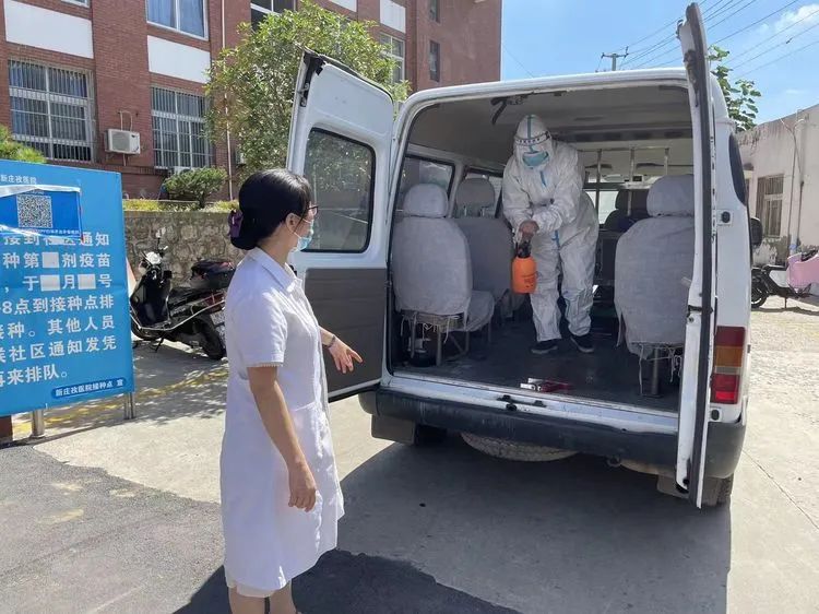 120车班司机司文采取二级防护将发热患者转运。30分钟后返回,院感科王积桂科长指导司机对转运车辆进行全面消毒。至此,演练结束。