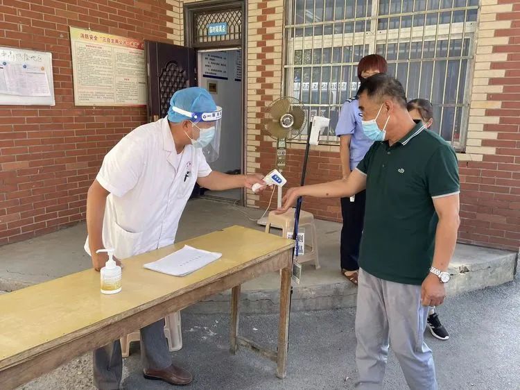 下午2:00演练正式开始。一老年男性患者来新庄孜医院就诊,预检分诊人员用非接触式测温仪监测体温时,发现该男患者发热,连续三次均在37.5℃。随后又改用水银体温表监测后显示体温38.2℃,确认为发热。因新庄孜医院非发热定点医院,预检分诊人员立即上报院疫情防控办公室(医政部)、分院院长,姚永平副院长立刻指示:通知相关职能科室,启动新庄孜医院《新冠疫情防控处置应急预案》。