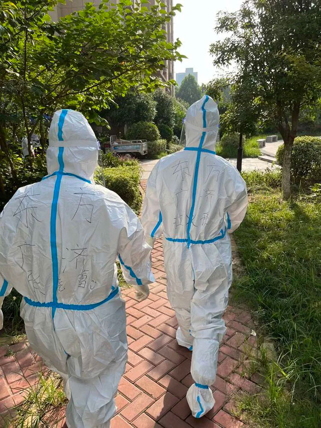 “吃点吧,多少吃点,补充体力。”大家你一言我一语的劝道。连续两天凌晨三点左右返回酒店,他们在旭日东升时入睡,在万家灯火中爬楼。采样从两人一组单日采样700人、1000人,到1200人、3000人,人困马乏,大家的精神和肉体,都已经快到极致。