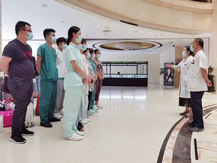 2022年7月15日上午11点,东方医院集团肿瘤医院、凤凰医院、广济医院、新庄孜医院共计50名医护和全市各家医护共200名医护登车上前往怀远支援。