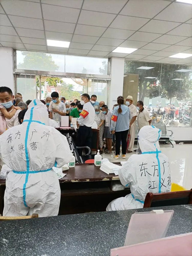 室外温度35℃,刚下大巴,汗就从大家的额头上冒了出来,顺着发梢往下滴。县里的工作人员正在焦急的等待,任务很快分配好,他和徐浩宇一组,被分到距离万福镇23公里外的唐集镇。路过万福镇的时候,他本想下去,说不定可以顺便看看家人,但是听到领队说龙亢镇的任务更重,他选择了和同事前往龙亢镇。