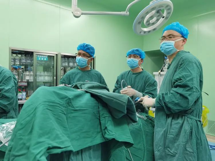 为最大程度的保障术中安全,麻醉科邀请集团麻醉科医疗中心刘仑院长为其实插管全身麻醉,广济医院麻醉科主任卜美林、朱瑾医师配合实时监控患者状态。集团总院普外科医疗中心曹辉主任主刀,经过严格的麻醉管理,老人生命体征平稳,在手术室团队的密切配合下,曹辉主任带领团队为其顺利行腹腔镜辅助下乙状结肠癌根治术。