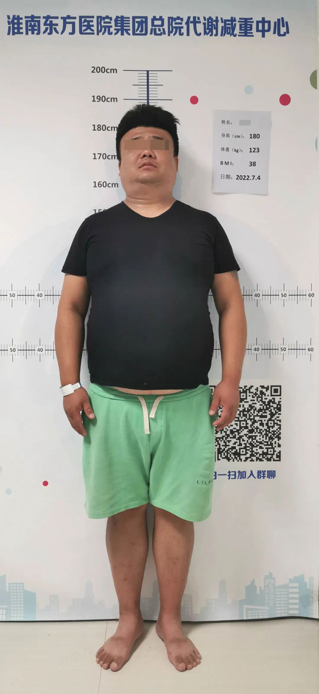 正值而立之年的梁先生,身高180M、体重123kg,体质指数(BMI=Kg/㎡)37.96。与年龄极不匹配的是他的健康状况:“病态性肥胖”、“代谢综合征”、“高血压三级”、“脂肪肝”、“黑棘皮病”、“食管炎”、“慢性胃炎”等,肥胖带来的代谢性疾病日益严重。肥胖,不仅严重了他的外貌形象,对健康的影响更是不断加剧。