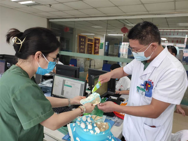 2022年8月19日是第五个中国医师节,敬佑生命、救死扶伤、甘于奉献、大爱无疆是传承不朽的医师精神,为了感谢这群可敬可爱的医生们,庆祝属于他们自己的节日,东方医院集团董事长江永强一早就带领相关部门负责人来到各科室,向医师同道们致以节日的祝贺并送上精美而甜蜜的大蛋糕。