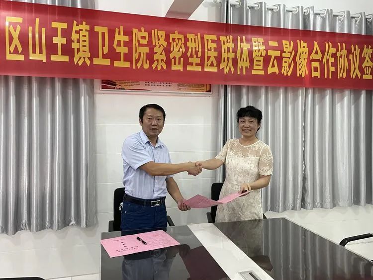 8月16日上午,淮南东方医院集团总院詹一朝副院长、集团云影像诊断中心张玉超副院长、新庄孜医院徐春晖院长、新庄孜医院影像科徐辉主任、外联部郭杰德部长等人来到八公山区山王镇卫生院,与卫生院方莉院长进行了交流,就医联体合作事宜深入交谈,并顺利签订了紧密型医联体暨云影像合作协议。