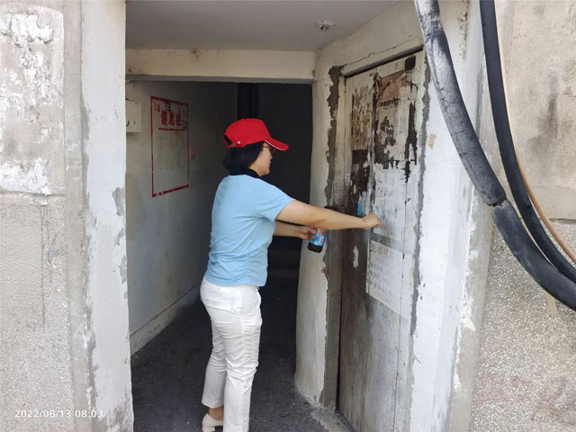 志愿者们到达洞泉小区后,在集团党委副书记陆宝和总院纪委书记杨策的带领下立刻投入行动,干得热火朝天,在当下炎热的天气里不怕脏、不怕累,齐心协力,将分划的10数栋楼的小广告清理干净,为文明城市的创建注入了一剂强心针。清理活动持续了2个小时。虽然胳膊略有酸痛,但看到自己的劳动成果,大家还是露出了欣慰的笑容。