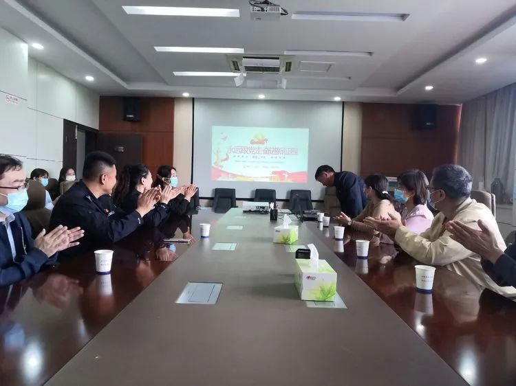 党建活动交流会中东方总院赵守成院长以《永远跟党走,奋进新征程》为题为党员干警讲授党课,全体党员干警参加会议。