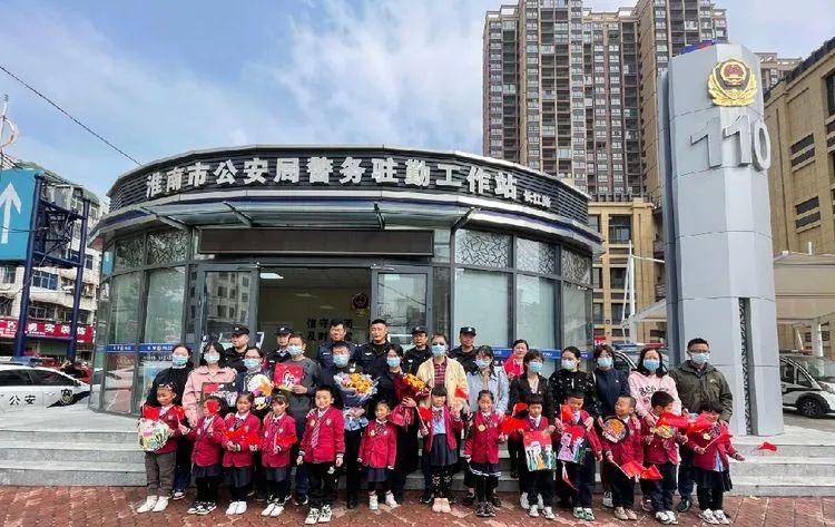 慰问现场,潘集区长江路警务驻勤工作站的警察们现场表演擒敌拳,潘集区七月画室的小朋友们为大家表演节目,并给医务人员和公安干警送上了鲜花和图画、献上他们诚挚的祝福。