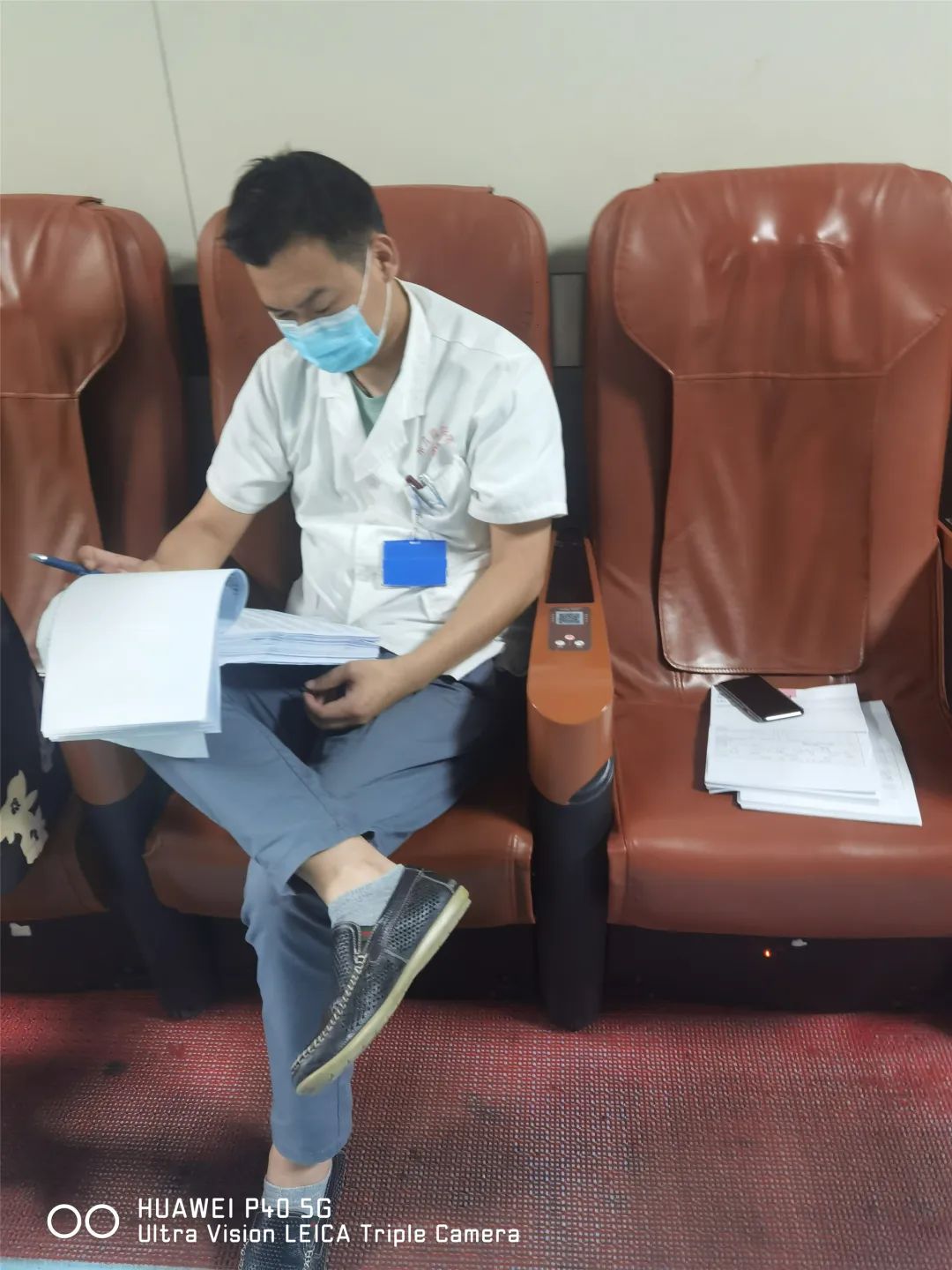 窗明地净,产房外的沙发座椅上,一位戴着口罩的医生侧坐翘起腿,膝盖上架着一沓资料,看上去像是病历。只见他低头凝视,默不作声,时而奋笔疾书,笔尖在雪白的纸上哗哗作响,时而托额思考,一坐半天纹丝不动,专注有如禅者入定……如果没人介绍,人们根本不会想到他是一名面对工作争分夺秒的科室主任,而此刻,他的妻子正在墙内产房里艰难待产……只有靠近他,待其一抬头,才能看见浓浓眉毛下略显疲惫的眼神和镇定暖心的微笑……