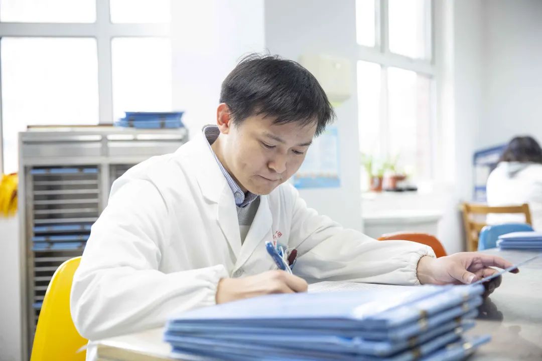 时间分秒过去,妻子依旧守着煎熬……忙着手头工作,一有间隙,许坤便一路小跑来产房外问问情况。直到傍晚下班时,妻子仍未分娩, 许坤实在不放心,就带着一沓沓病历来到产房门外静坐,一边整理书写病历,一边等待着里面的消息。由于产程长、顺产不成功,医护人员决定实施剖宫产。凌晨零点44分,随着一声清脆的婴儿啼哭,孩子降生了,是个7斤8两的女婴!得知消息的那一刻,许坤如释重负,百感交集般地露出了笑容。