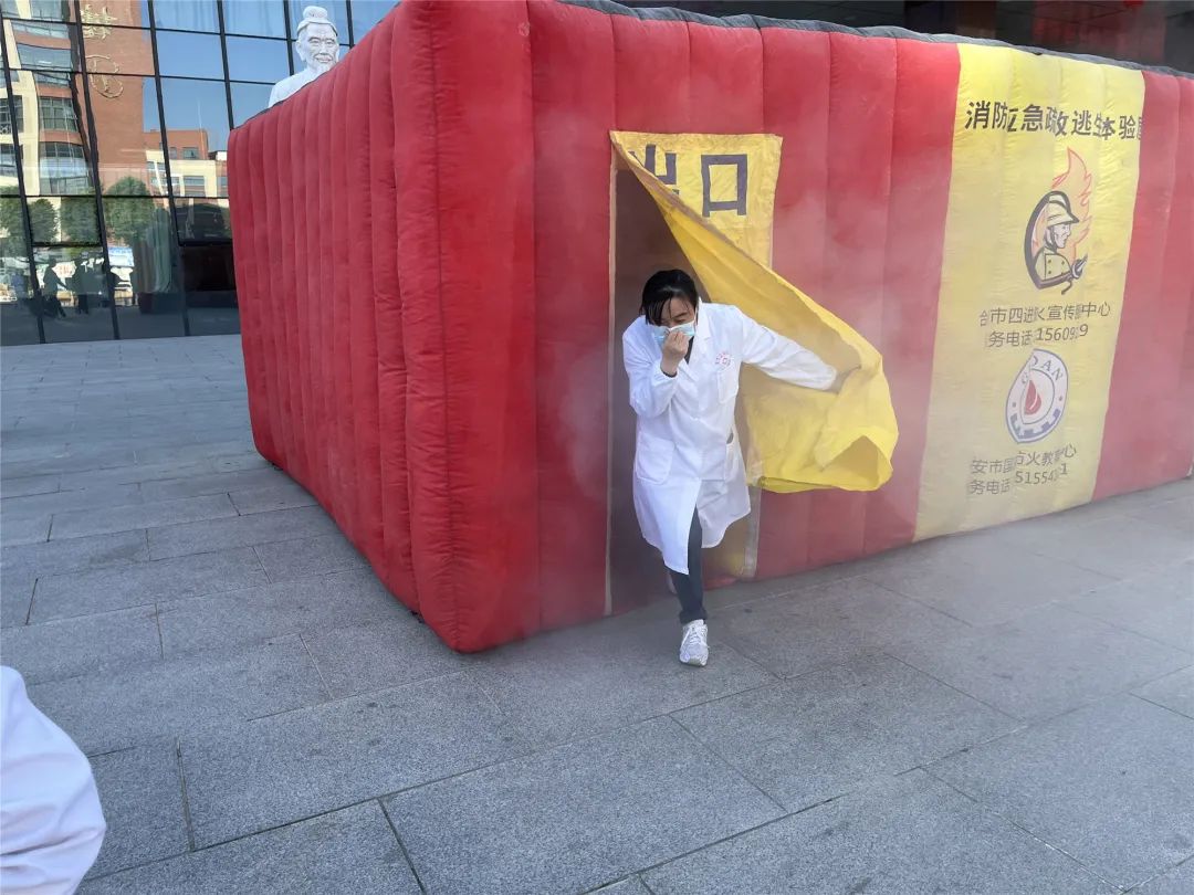 演练活动在淮南东方医院集团党委副书记陆宝的讲话下拉开了序幕,陆书记表示:“医院是重点消防单位,本次演练不仅是为了保证职工自身的安全,更重要的是为了保证病人的人身安全。”随后在淮南国安防火宣传教育中心的王国军教官和总院保卫科朱子林的安排下,在场的医护人员们逐个通过消防应急疏散逃生体验屋,直观感受到了火灾时期的环境;通过规范学习灭火器的使用,掌握了紧急情况下扑灭明火的方法。不仅增强了医护人员们的消防安全认识,更提高了大家遇到火情时的应变和救护能力。