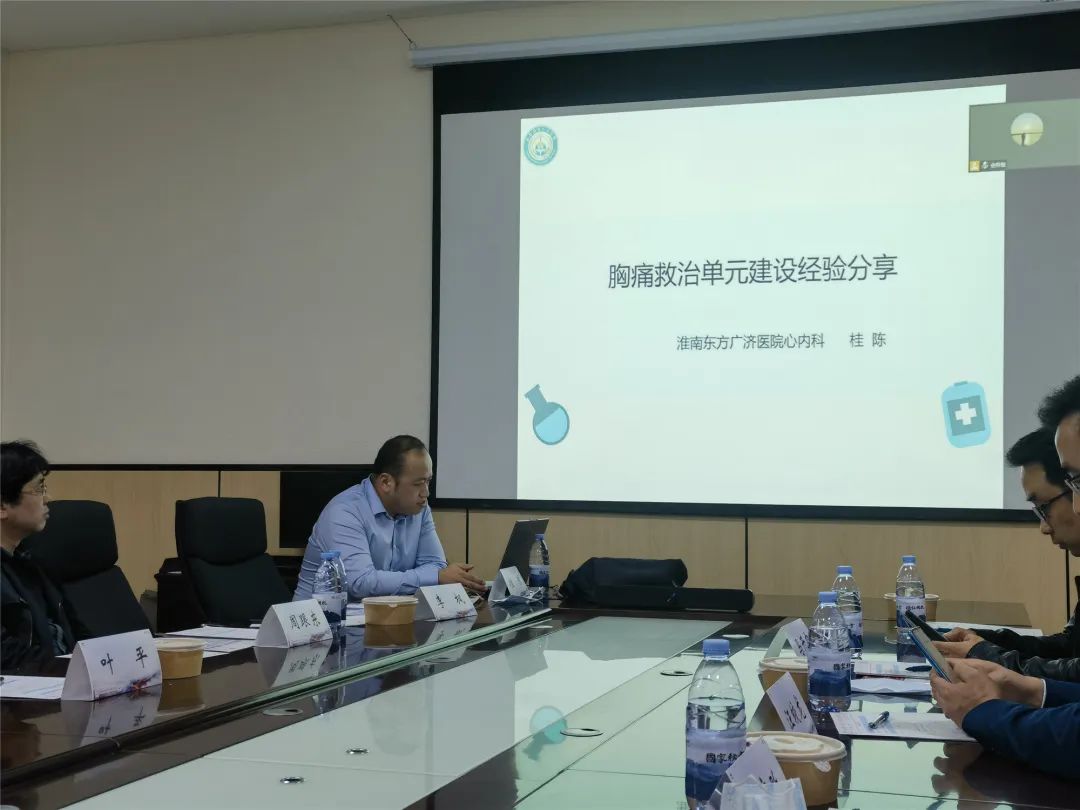 接下来由淮南东方医院广济医院心内科桂陈主任,对于胸痛救治单元建设经验进行了一个非常详细的分享,桂陈主任就胸痛救治单元成立意义、胸痛救治单元建设过程、现场验收及授牌、救治单元各项指标质控情况和病例分享5个方面进行了分享,整个的学习让现场的学习氛围非常热烈。