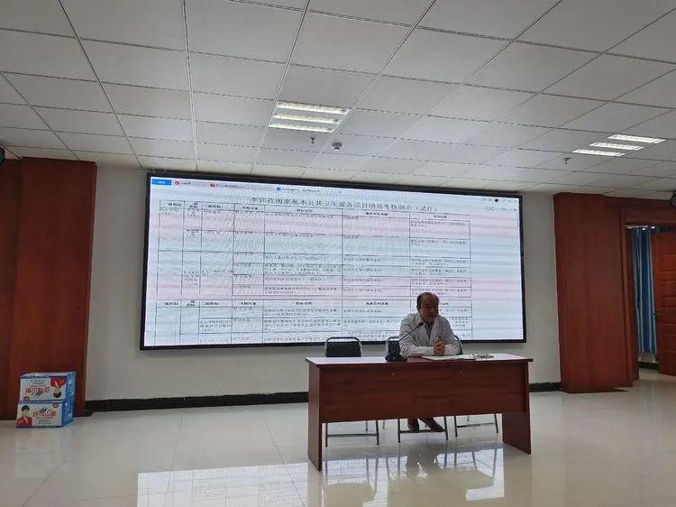 公卫科陈静科长为村医们讲解2022年度基本公共卫生服务绩效考核细则和家庭医生签约服务。