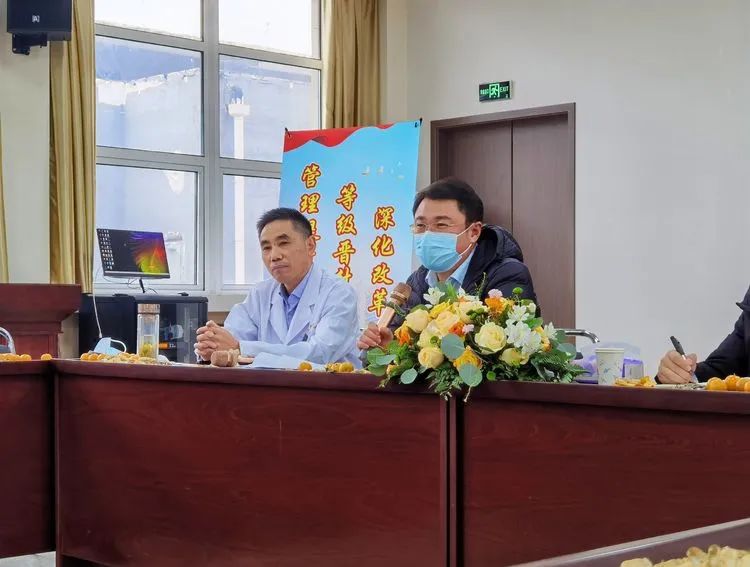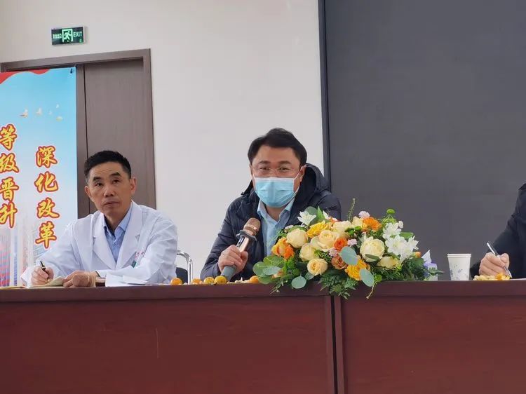 会场上掌声雷动,经久不息。院党委书记兼业务副院长胡文生首先代表全院干部职工向董事长一行表达了热烈的欢迎。紧扣工作实际,医院院长谢鸿寿就疫情防控、医院经营、等级创建、医院安全、人才建设、社区卫生和学科建设等工作进行汇报。