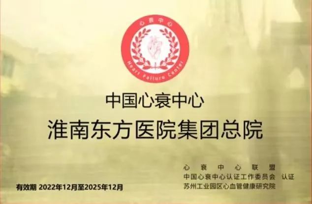 淮南东方医院集团总医院心衰中心通过中国心衰中心认证并正式授牌,既是对医院以往规范诊疗心衰所做工作的认可,也激励医院今后在本地区的心衰诊疗中,起到更好的模范作用,促进区域整体心衰诊疗水平的提高。心衰中心的建设任重道远,我院心衰中心将不负众望,稳步向前,不断推动本地区心血管健康事业的发展!