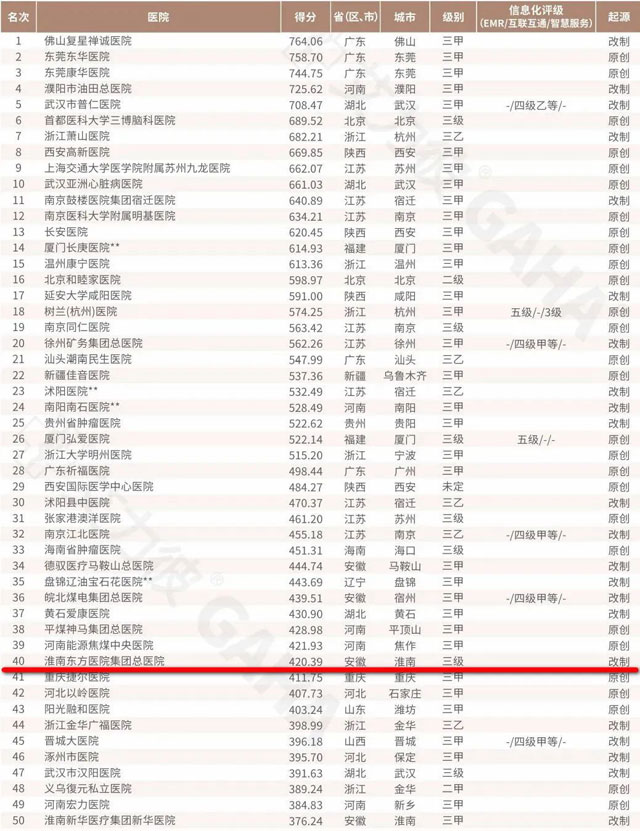 ▲东方总院入选2022届社会办医-单体医院100强,位居40名