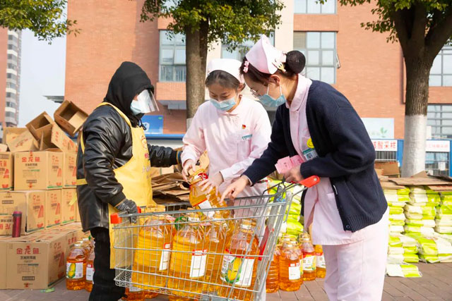 回望疫情这三年,百废待兴,各行各业都受到了沉重的打击,在如此艰苦的大环境下,江永强董事长表示:“面对的困难再大,集团的米油文化不会变,再苦也不会苦职工。”因此集团也是早早的为大家准备好了新年福利。一桶桶油一袋袋大米都摆放在在外科1号楼下面,占据了不小的地方。米油领取的现场,也是热闹非凡,员工们手里拎着米油脸上洋溢着幸福的笑容。