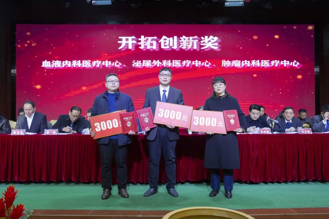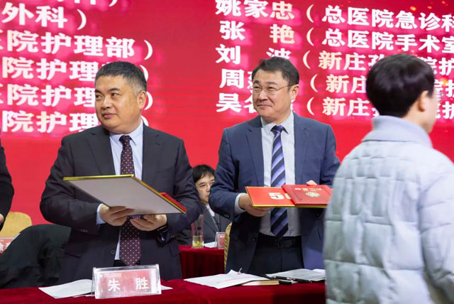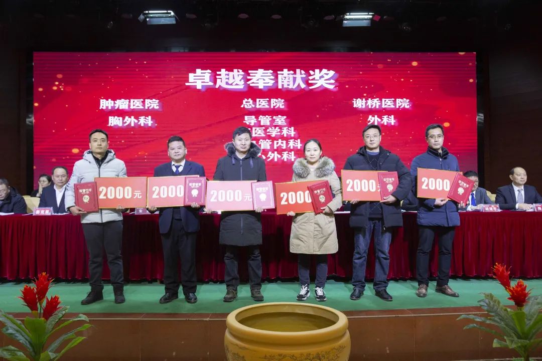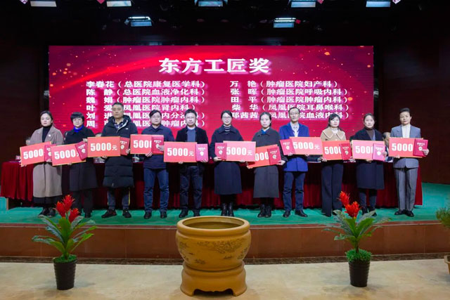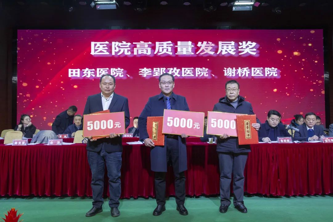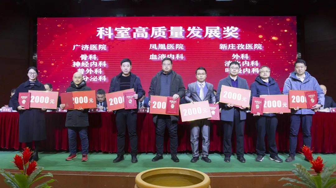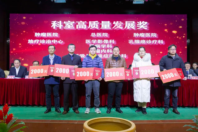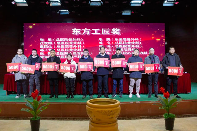 宣读结束,大会举行了隆重的颁奖仪式。医院集团党委书记江鸿方、董事长江永强等集团和直属医院领导分别为医院高质量发展奖、医疗中心高质量发展奖、管理创新奖、开拓创新奖、科室高质量发展奖、规范医疗奖、卓越奉献奖、抗疫先进集体、东方名医、东方工匠、科研创新标兵、教学园丁奖、优秀带教奖、管理创新标兵、技术突破标兵、抗疫先进标兵、青年励志奖、美丽天使奖等50个先进集体和152位先进个人颁发了荣誉证书和奖励。