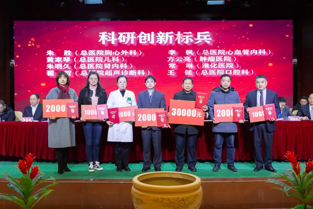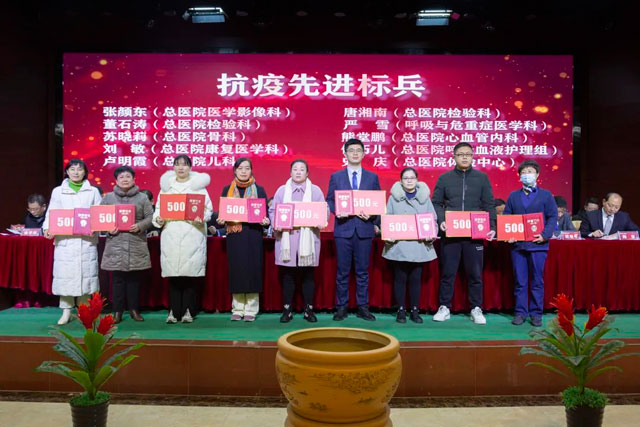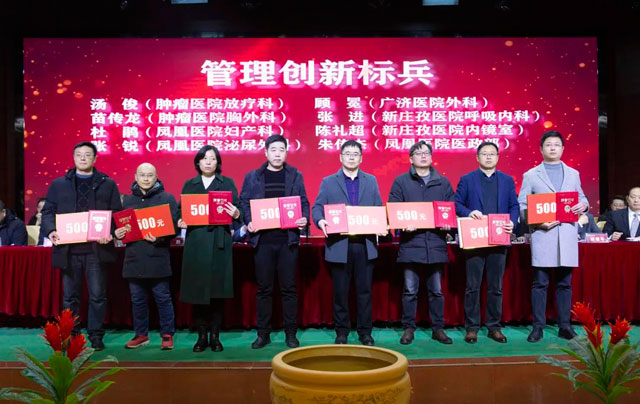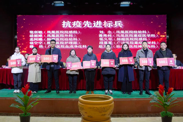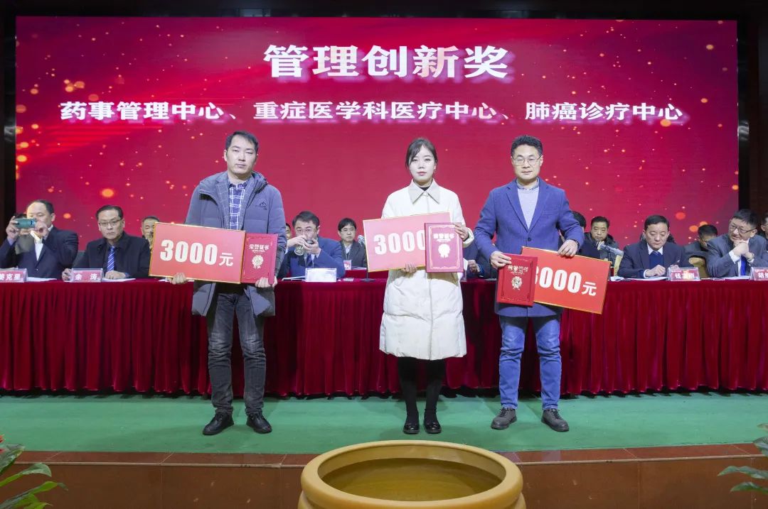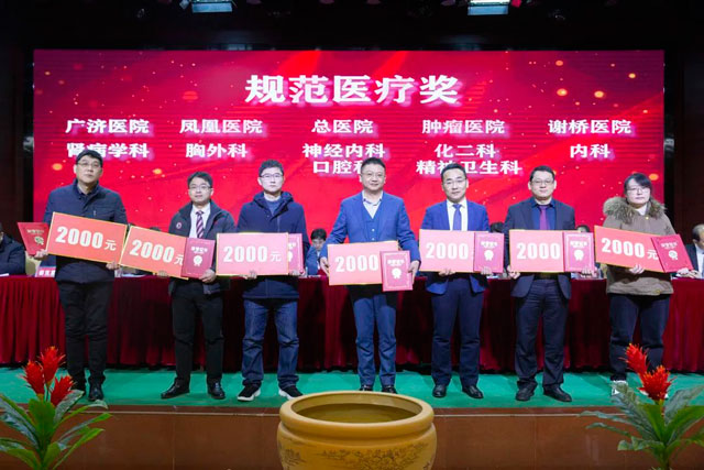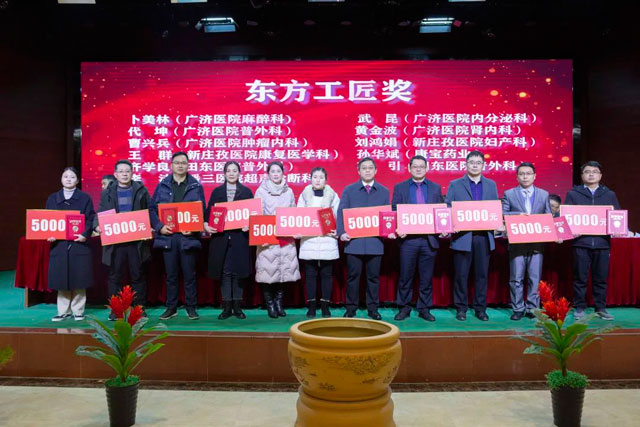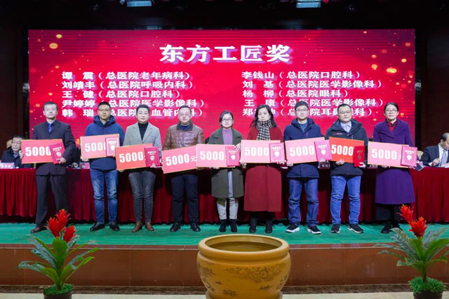 宣读结束,大会举行了隆重的颁奖仪式。医院集团党委书记江鸿方、董事长江永强等集团和直属医院领导分别为医院高质量发展奖、医疗中心高质量发展奖、管理创新奖、开拓创新奖、科室高质量发展奖、规范医疗奖、卓越奉献奖、抗疫先进集体、东方名医、东方工匠、科研创新标兵、教学园丁奖、优秀带教奖、管理创新标兵、技术突破标兵、抗疫先进标兵、青年励志奖、美丽天使奖等50个先进集体和152位先进个人颁发了荣誉证书和奖励。