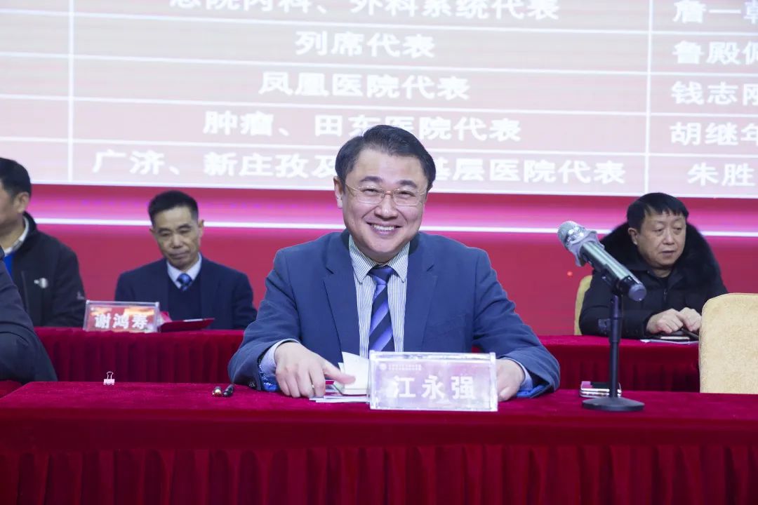 大会在嘹亮的《国歌》中拉开帷幕!江永强董事长代表医院集团党委、董事会作《守正创新、深化改革;踔厉奋发、勇毅前行》新年工作报告。