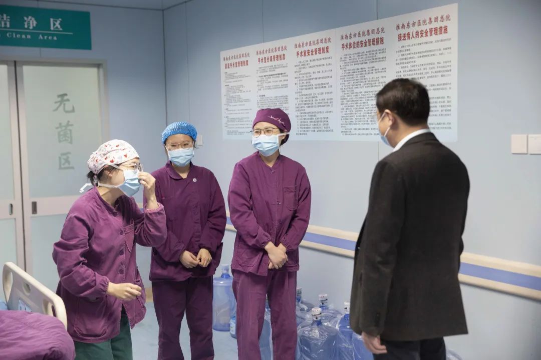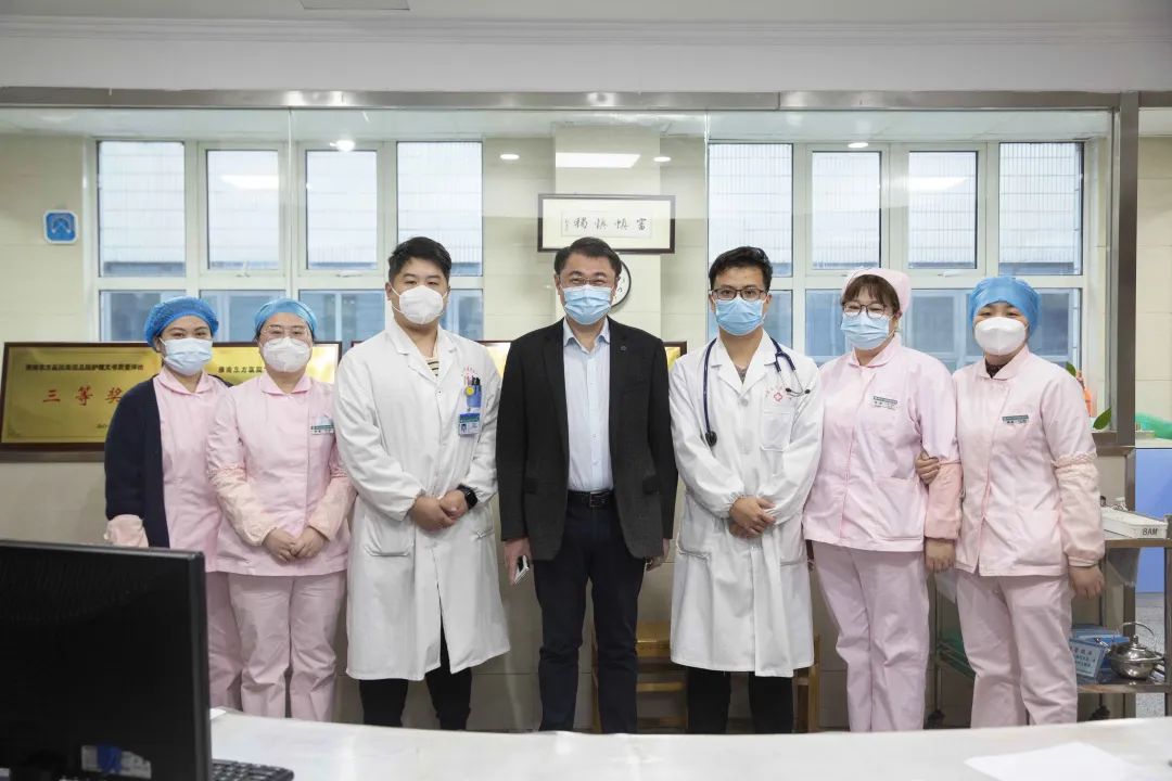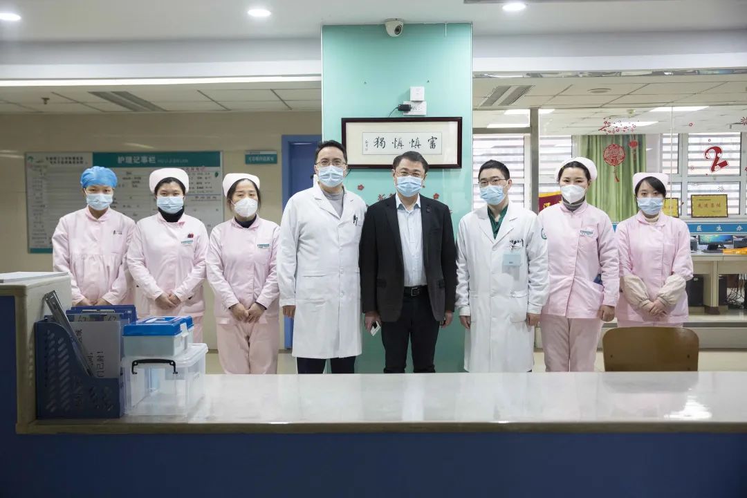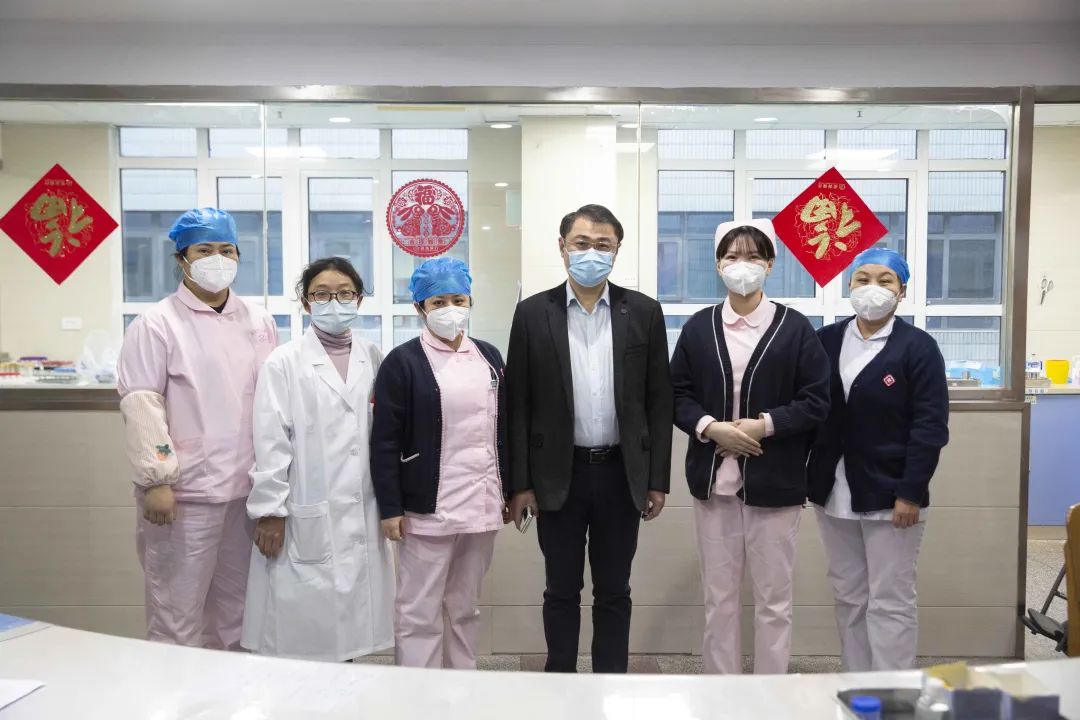 每到一处,江永强董事长都与各科室人员亲切交谈,叮嘱医护人员在春节期间要时刻谨记医疗安全的重要性,尽职尽责的关心爱护病人,同时嘱咐“阳康”后的大家在繁忙的工作中要保重身体,不要过度疲劳。