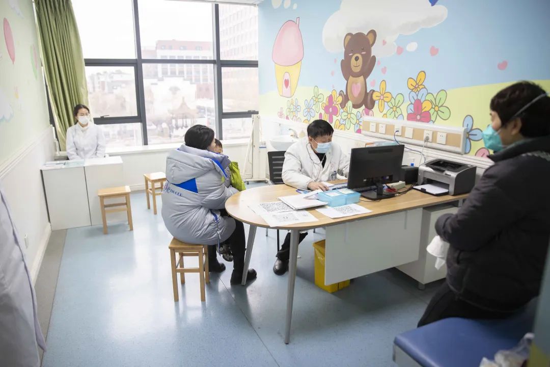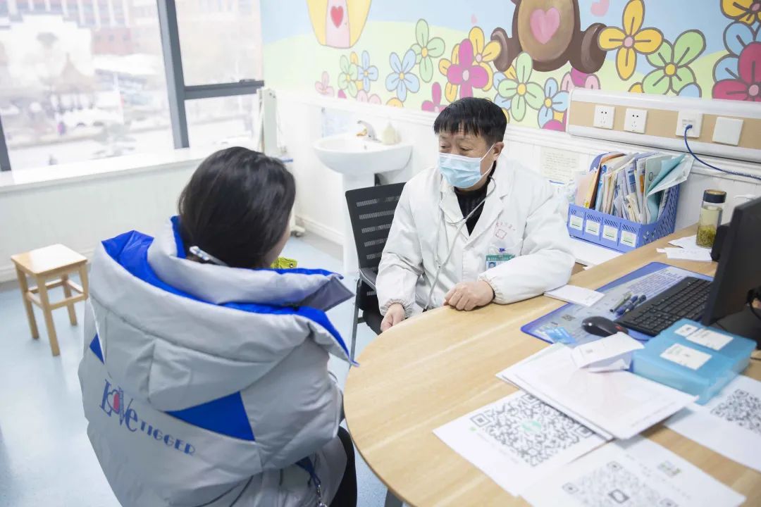 还没有到八点上班的时间,儿科门口已经坐满了前来就诊的家长和孩子。活动中,工作人员传播正确的生长发育健康知识,使用AI智能骨龄仪免费为儿童提供骨龄检测,准确测量身高、体重,义诊活动现场氛围温馨祥和,孩子和家长们有序地排着队等候义诊服务,医生们认真负责地对每位家长进行了详细的问诊、体查,对咨询的问题一一解答,并对有骨骼发育问题的孩子的进一步治疗提供建议。为了帮助家长了解更多儿童生长发育知识,让孩子能够长得更高,儿科专家赵守成院长也亲自坐镇,针对担心孩子长不高、性早熟等问题的家长答疑解惑。