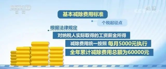 首先是基本减除费用标准,也就是个税起征点。根据法律规定,对职工实际取得的工资薪金所得,减除费用统一按照每月5000元执行,全年累计减除费用总额为60000元。