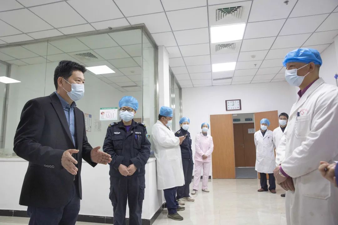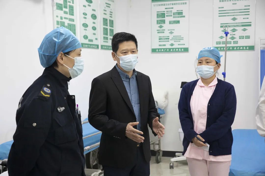 朱院长和邹院长首先听取了广济医院急诊科主任杨爱骏关于科室近期工作情况的汇报。随后,实地察看了科室急救标识、整体布局和人员配置,并现场参与了急诊科医护早交班,最后组织科室开展“心跳呼吸骤停应急演练”。